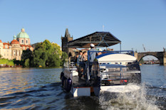 Habt Spaß mit Freunden, trinkt eine Menge Bier, tretet ordentlich in die Pedale und genießt die wunderschöne Aussicht auf das Prager Stadtzentrum vom Wasser.