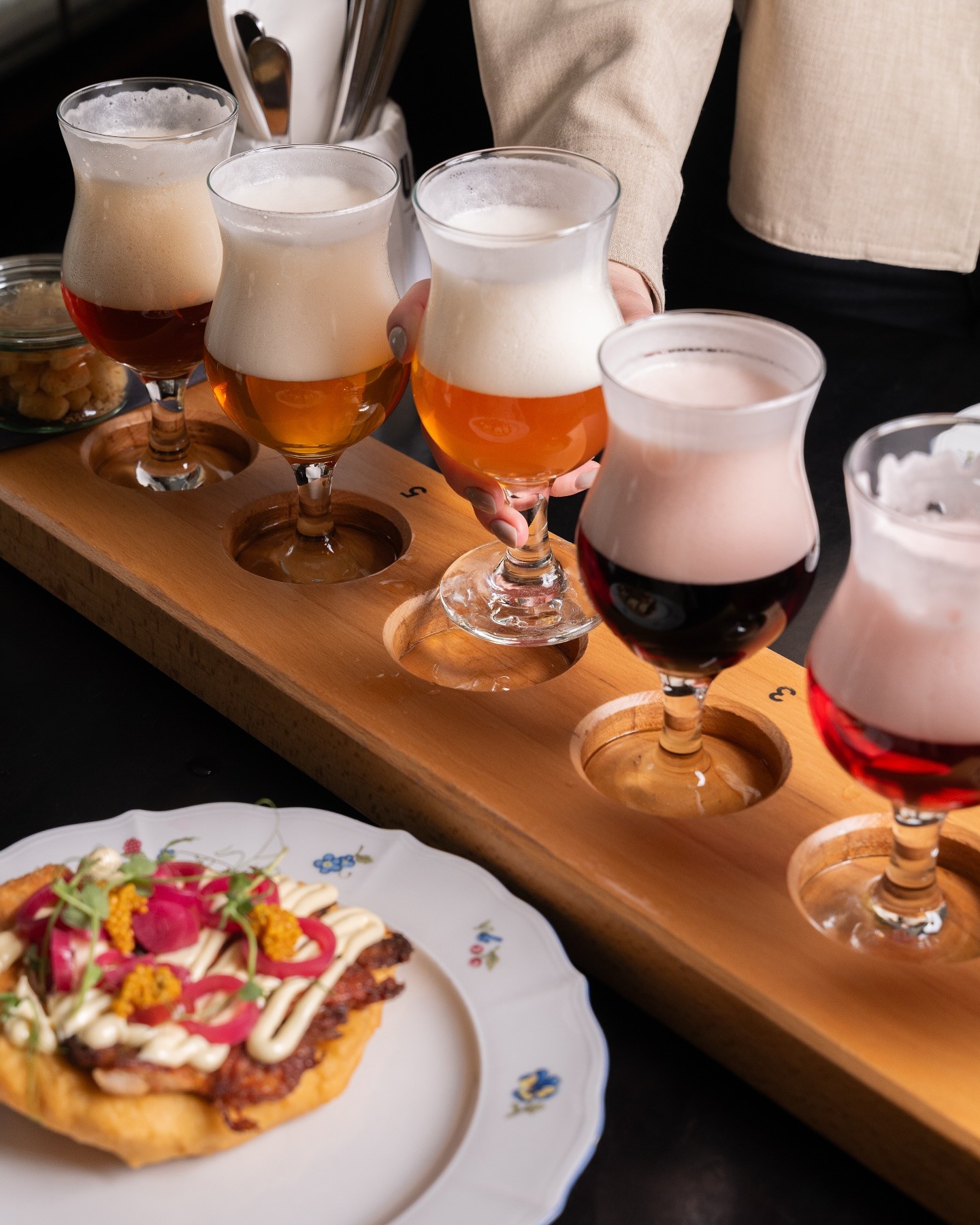 Ihr trefft euch mit eurem Pissup-Guide und dann geht es gemeinsam zum Brauerei-Pub. Dort angekommen, dürft ihr an eurem Tisch Platz nehmen. Dann könnt ihr euch ein Hauptgericht von der Karte auswählen. Ihr habt die Wahl zwischen 1. Schnitzel vom Schwein mit Wiener Kartoffelsalat und Schwarte, 2. Entenkeulen-Confit mit Birnen-Weißkohl, Karlsbader Knödel und Thymian-Soße, 3. Wildschweingulasch mit grobem Kartoffelknödel, Zwiebeln und Kräutern, 4. Schweinekeule mit Honigsenf, Quitten-Meerrettich-Chutney, saurem Gemüse und Sauerteigbrot oder 5. Cremige Spätzle mit Trüffelnudeln und Eier. Als Alternative könnt ihr euch auch ein vegetarisches, veganes oder glutenfreies Gericht bestellen. Zu eurem Essen habt ihr eine Stunde lang eine Flatrate auf Bier. Ihr könnt also so viel trinken, wie ihr wollt und in der Zeit schafft.